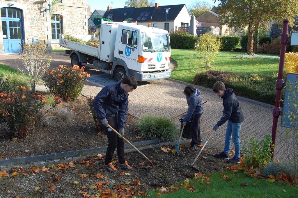 Dorian, Tom et Fabian, trois jeunes de la commune, encadrés par des agents communaux, ont participé à des travaux d’entretien dans le cadre du dispositif argent de poche.