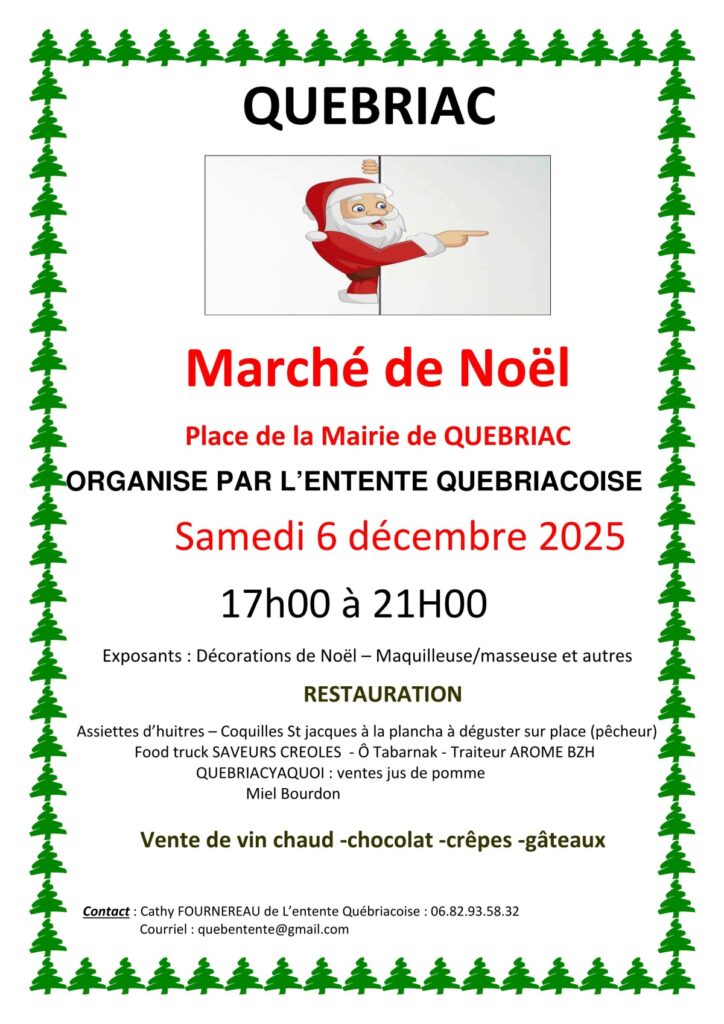Place de la Mairie de QUÉBRIAC le samedi 6 décembre 2025 de 17h00 à 21H00.