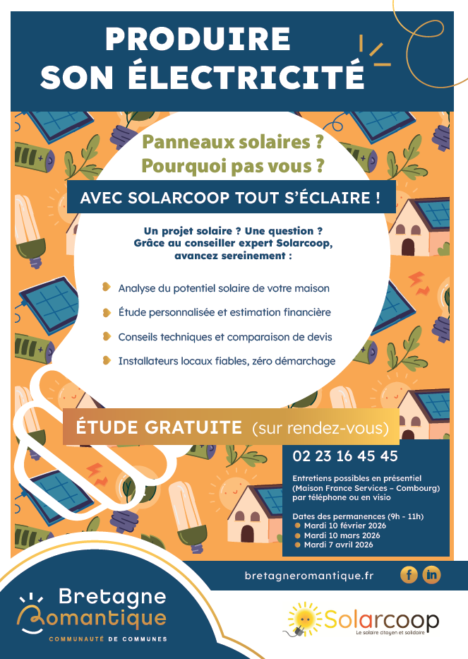 Face au changement climatique et à la hausse du prix de l’énergie, la transition écologique devient une priorité pour les territoires. La Communauté de communes Bretagne romantique souhaite accompagner les habitants dans le développement des énergies renouvelables locales, et plus particulièrement celui des panneaux solaires, au travers d’un partenariat mené avec Solarcoop