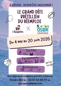 L’OSBR, en partenariat avec l’Équipière, association et ressourcerie sportive située à Rennes, ayant pour objectif de rendre le sport accessible au plus grand nombre, collecte des affaires de sport dans tout le département pour leur donner une seconde vie !